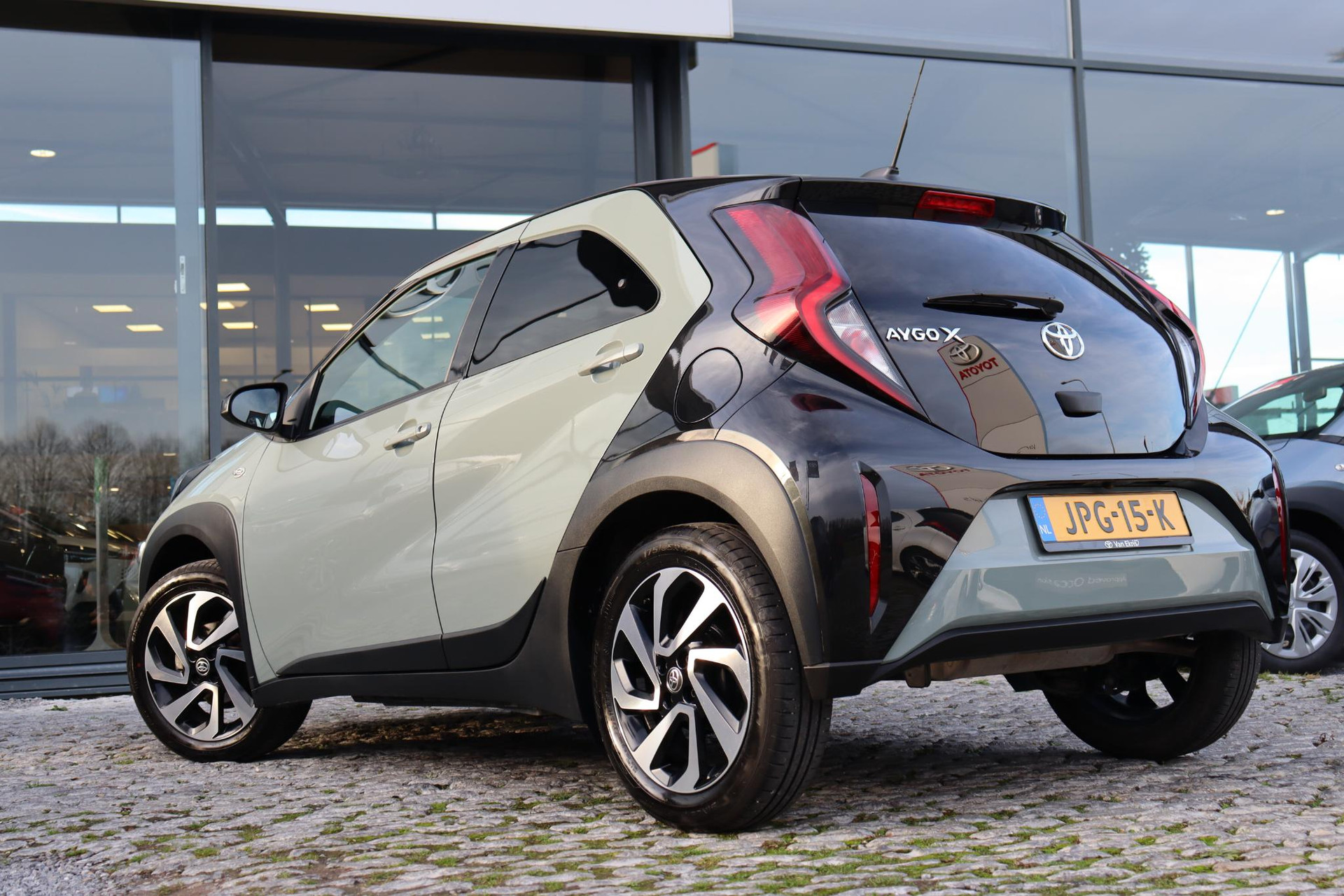 De Toyota Aygo X 1.0 handgeschakeld Pulse uitvoering in de prachtige kleur Tarragon Green met een Zwart dak. Bij de Pulse uitvoering krijgt u veel opties en extra's zoals: Stoelverwarming, Achteruitrijcamera, Apple-carplay, Android-auto, Lichtmetalen velgen, Privacy glas, Airconditioning, LED verlichting, Mistlampen, Bestuurderstoel in hoogte verstelbaar, Elektrisch verstelbare buitenspiegels, Elektrische ramen voor, DAB Audio, en nog veel meer!!