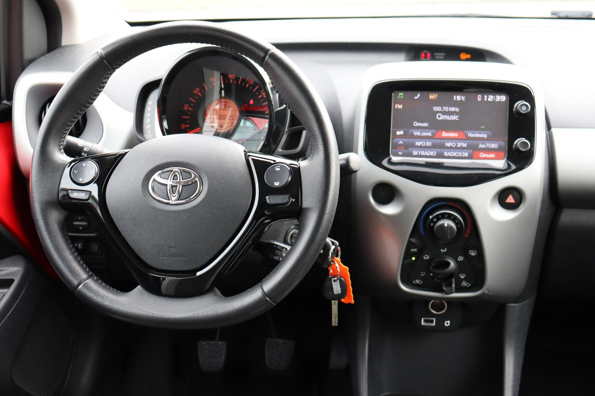 Toyota Aygo 1.0 VVT-i X Nav In de prachtige kleur Super Red, is ruim uitgevoerd zo heeft de auto, Navigatie, Bluetooth, Elektrische bediende spiegels, Achteruitrijcamera, Elektrische ramen voor, Hill Hold Functie, Een start Stop systeem en nog veel meer!