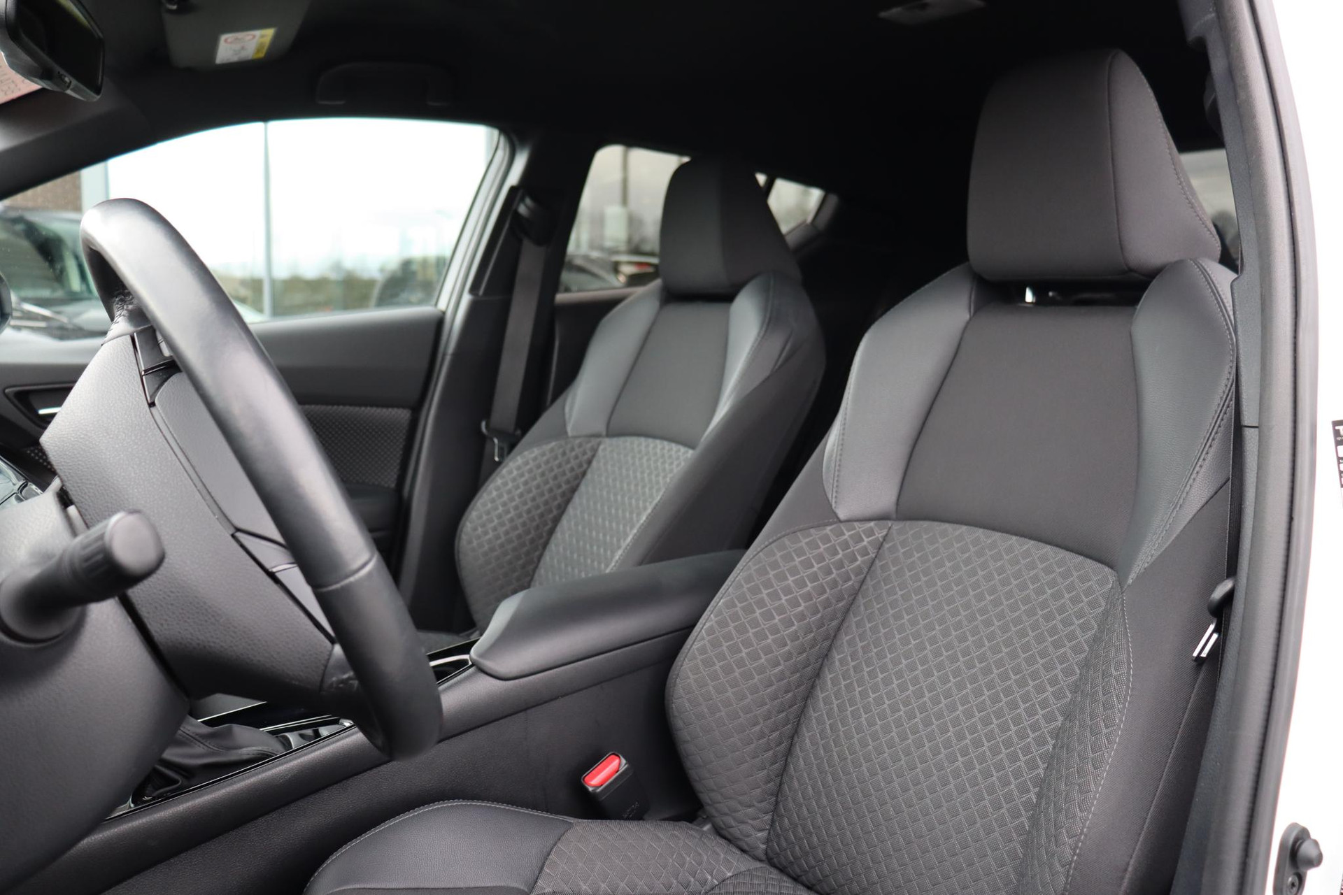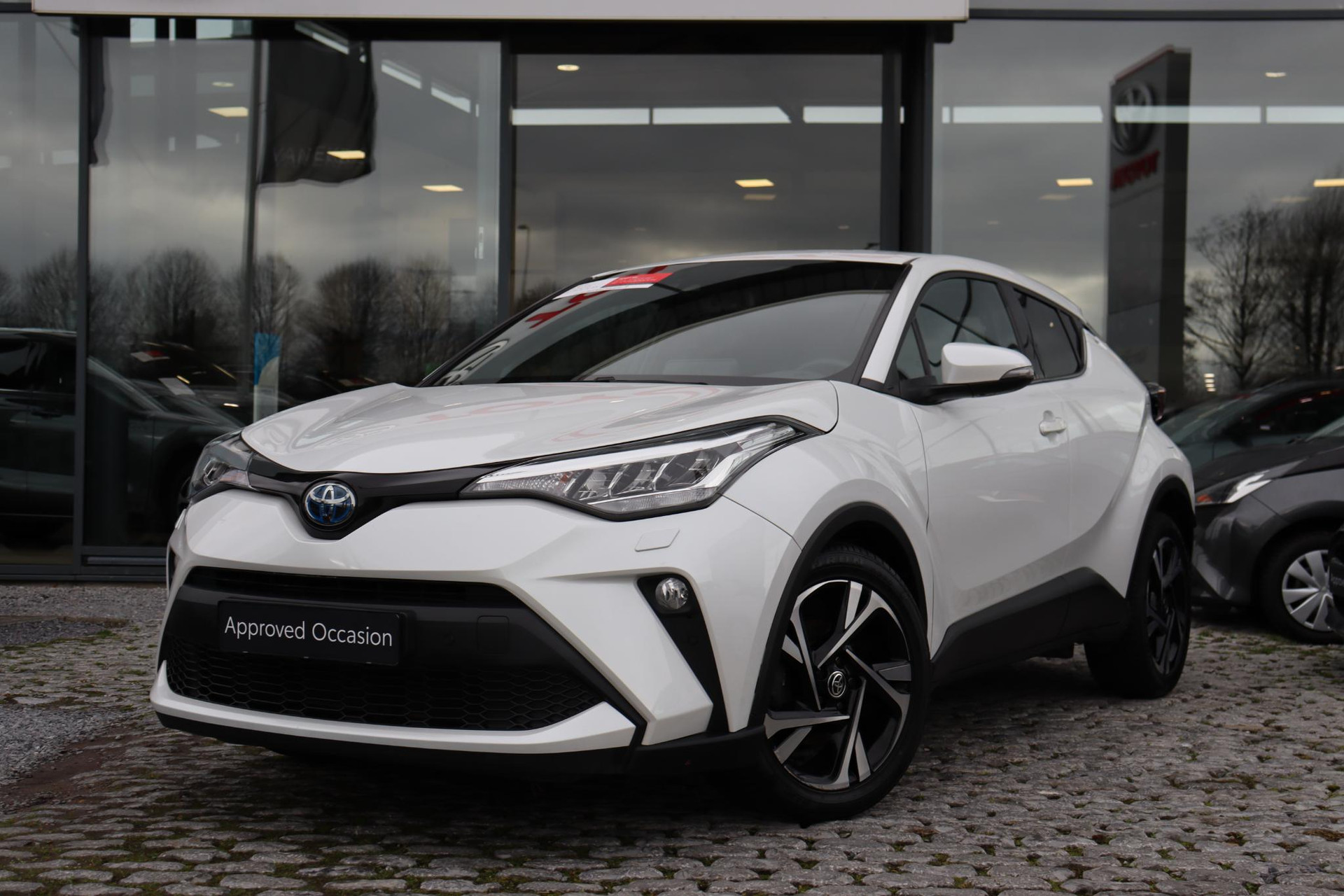 Jonge CHR 1.8 Hybrid Style Limited  in de kleur White Pearl pa Deze Coupe High Rider is voorzien van Stoelverwarming, navigatie systeem,  Blind spot monitor, parkeersensoren voor en achter, Adaptive cruise control, deels lederen bekleding, Apple carplay, Android auto en meer!