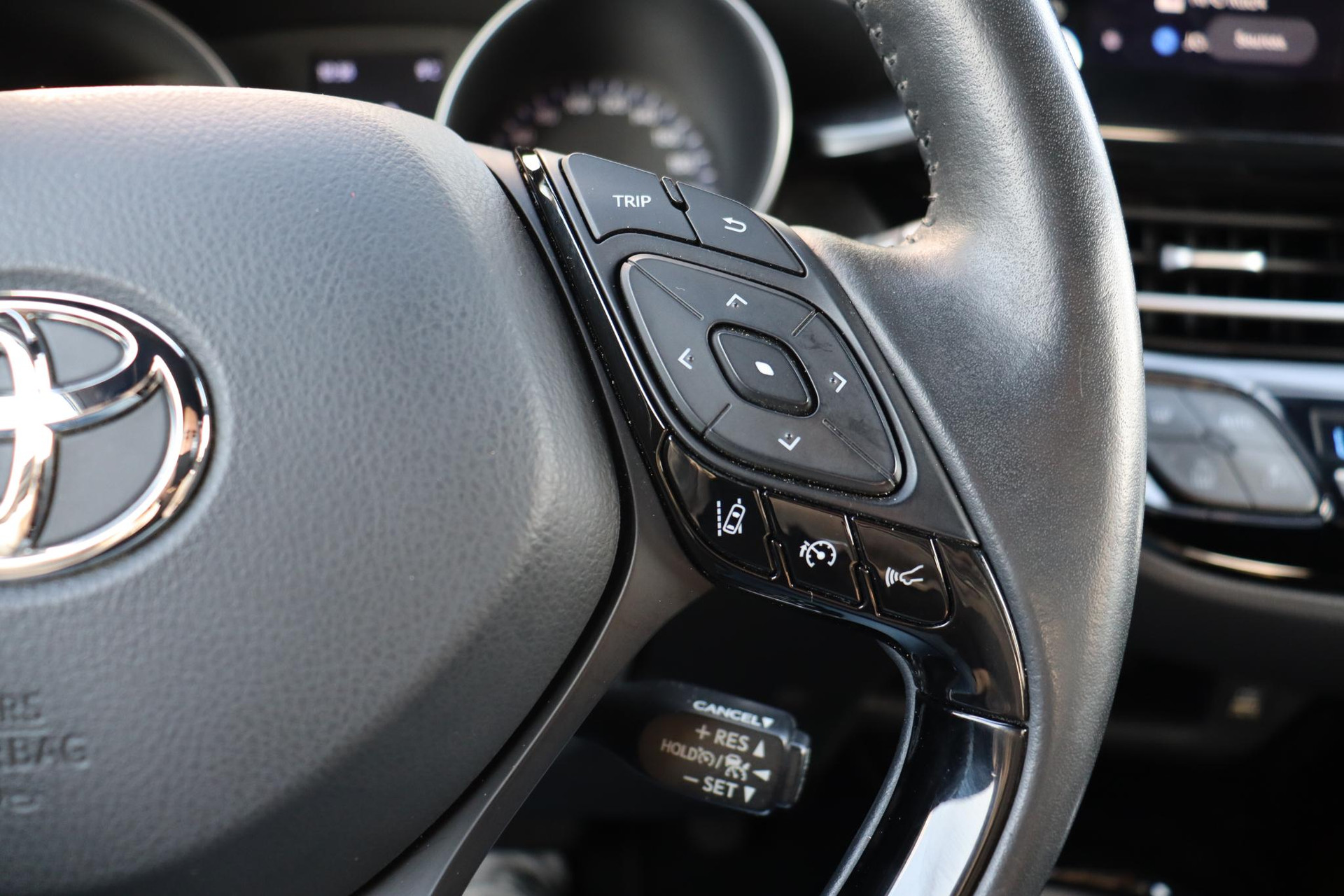 Jonge CHR 1.8 Hybrid Style Limited  in de kleur Night sky black metallic. Deze Coupe High Rider is voorzien van Stoelverwarming, navigatie systeem,  Blind spot monitor, parkeersensoren voor en achter, Adaptive cruise control, deels lederen bekleding, Apple carplay, Android auto en meer!