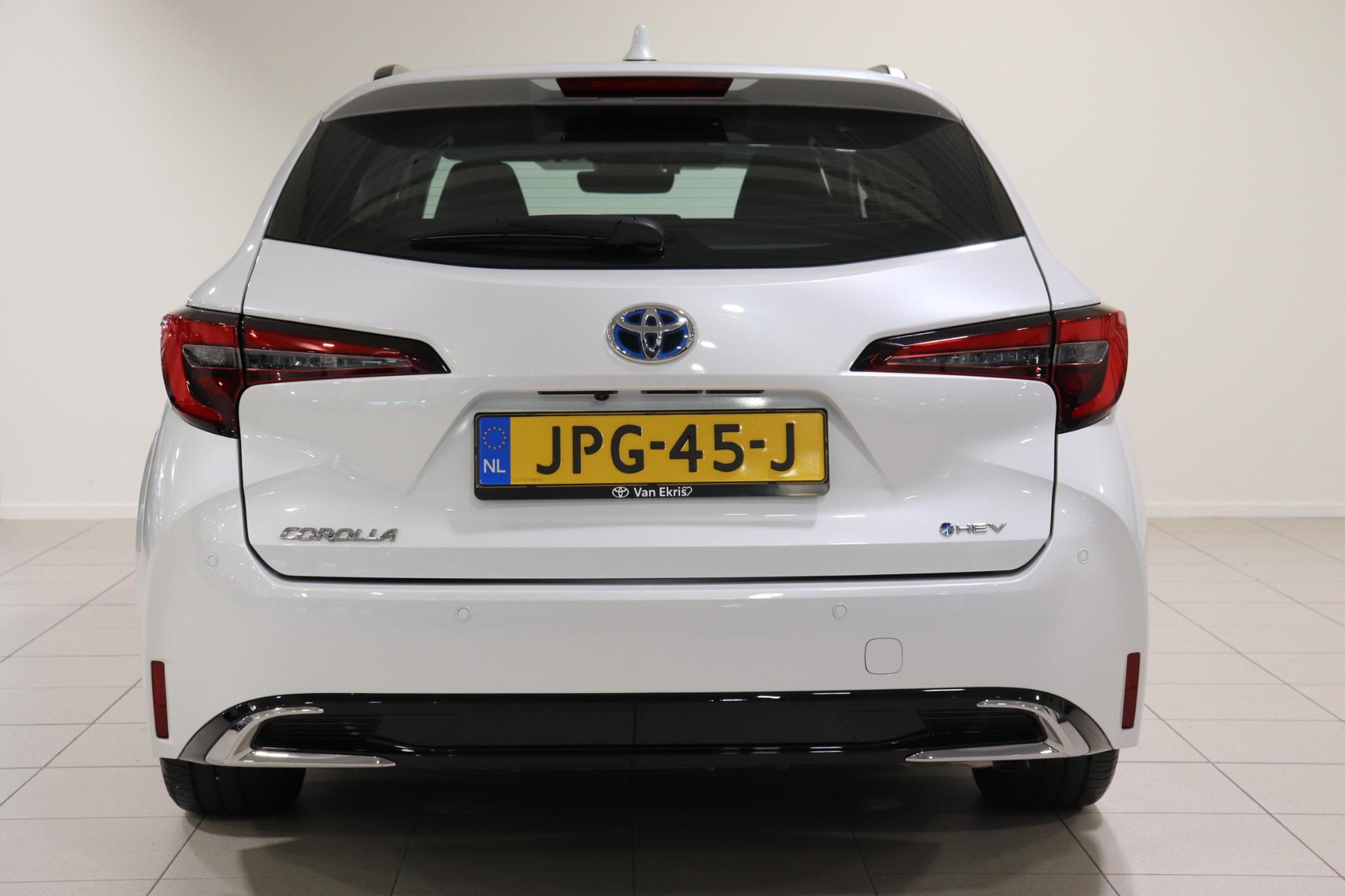 Nieuw bij ons binnen Complete Toyota Corolla Touring Sports 1.8 Hybrid Dynamic Limited in de kleur Parelmoer wit.