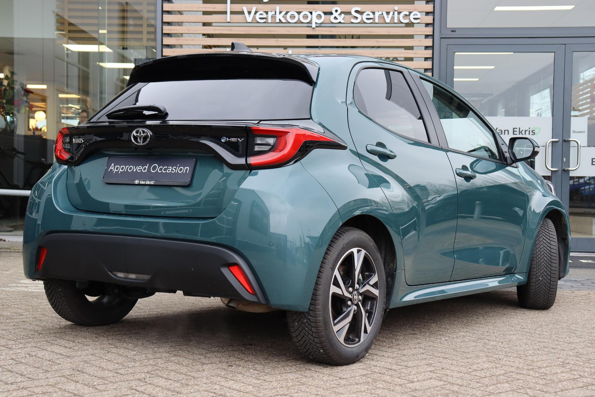 Bijna nieuw zeggen we bij deze Yaris! Deze Yaris 1.5 Hybrid 116 Pk Dynamic met Comfort Pack in de nieuwe kleur Forest Green metallic. Deze Yaris staat op All Seaons banden. Voorzien van o.a stuur en stoelverwarming, parkeersensoren voor en achter, Blind spot monitor, apple carplay, android auto, parkeercamera en meer!